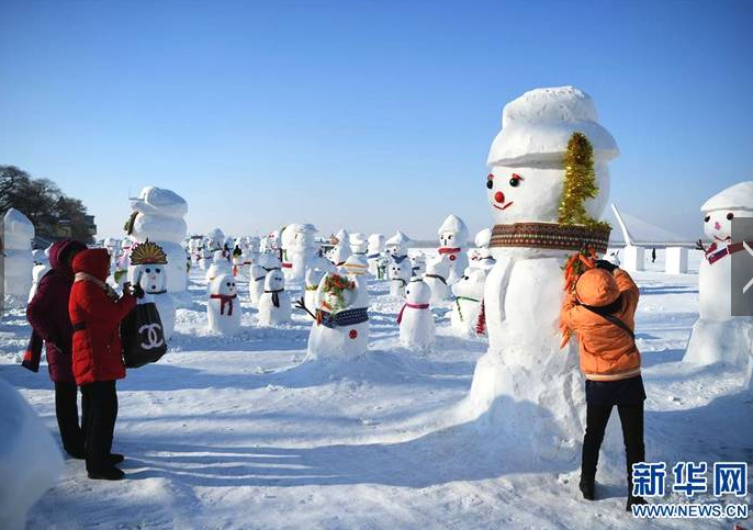 1月2日,市民、游客在雪人群中游玩观赏。 新华社记者 王建威 摄