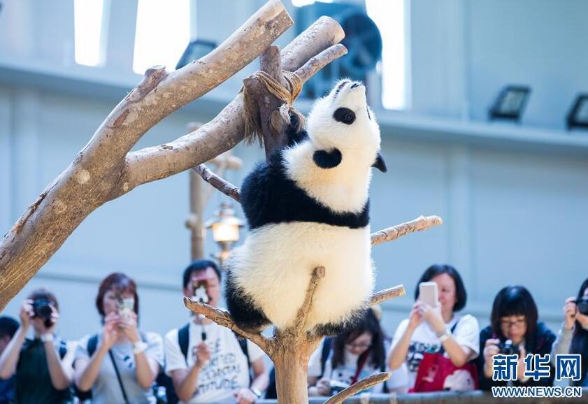 1月14日,在马来西亚吉隆坡附近的马来西亚国家动物园,大熊猫宝宝过一岁生日。新华社记者朱炜 摄