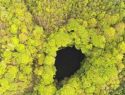 陕西天坑数量堪称为世界第一,它的科研价值更是独一无二。这里的天坑群中被国际著名洞穴探险家让·波塔西誉为“世界上最美的天坑”。本篇精选了位于陕西省的八处著名的天坑。图为航拍陕西汉中天坑群之镇巴“天悬天坑”。国际著名探险家让·波塔西称之为“世界上最美的天坑”