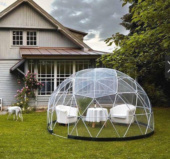 这种篷房,标准配置是由一个穹顶骨架、一个透明pvc膜组成。金属三角框架的超强稳定性,形成全面的穹顶遮盖。占地面积仅有10㎡,但却能拥有360度的完美视野。