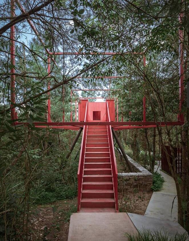 此外,“松间”也是王安石一首七言绝句的题名,在古代的诗文里常有隐居的意思。建筑半隐在山林之间,让山中度假的客人暂时远离日常喧嚣,享受安静的自然风景,确也符合诗文的意境