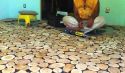 装修的时候地面不是瓷砖就是木地板,现在基本上成了业主装修必选建材,不过不管哪种建材其实造价都非常高,瓷砖一个平方就要上百元,好一定的地板也不便宜,基本上也要上百元,有些实木地板就要二三百元一个平方,家里装修下来也要上万元。一位装修达人就发明了一种新的地面建材,他花300买来一棵树锯成小段,铺家里成“纯实木地板”,还容易打理。