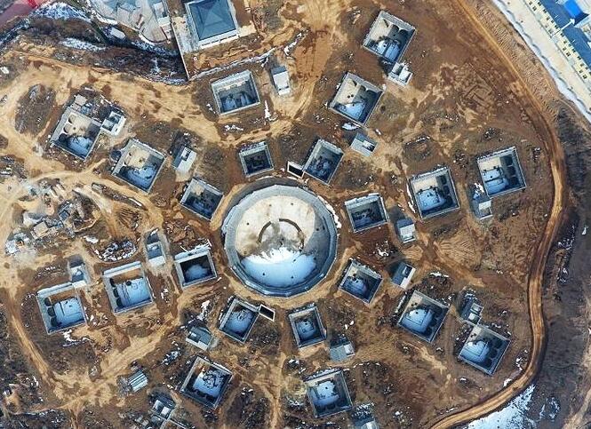 在地炕院的建造过程中,有时候还会和很多中国其他文化结合在一起,最典型的就是传统的阴阳八卦方位,充分体现了古人的智慧。图为一片典型的“八卦地炕院”。