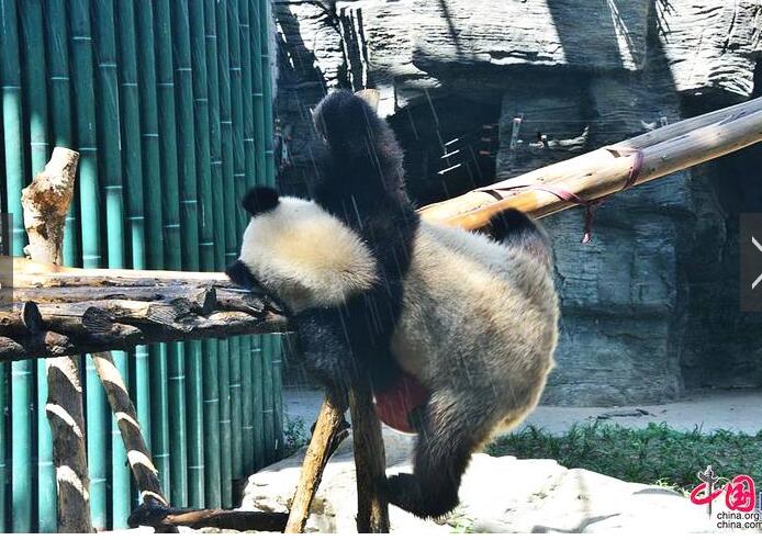 高温天大熊猫“埋头”避暑 实力演绎“天真热”