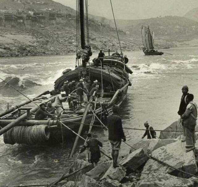 老照片:1946年四川万县长江三峡纤夫和附近百姓生活