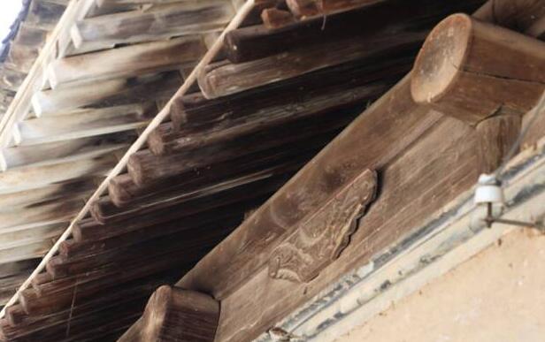 瓦房的房檐下可以看到当年建房子用的大梁。这是房子大梁的外部,一根大梁总有1尺多粗,听大哥讲前几年有几个人来他家看后,要收他家房子的大梁,一根出价都上万了,他给拒绝了,把大梁卖了房子不就塌了吗?一家人住哪啊。
