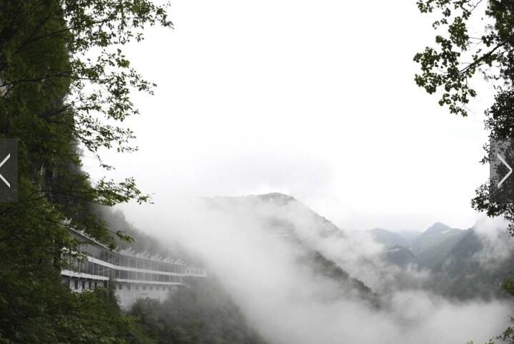 一山村有一“悬崖酒店”,上下共三层,仿佛置身仙境