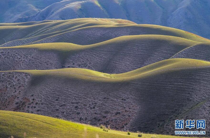 这是8月13日拍摄的喀拉峻草原一景。 喀拉峻草原位于新疆伊犁河谷的特克斯县境内,山峦连绵起伏,线条柔美,层次分明,犹如一幅大气磅礴的天然画卷。 新华社记者 胡虎虎 摄