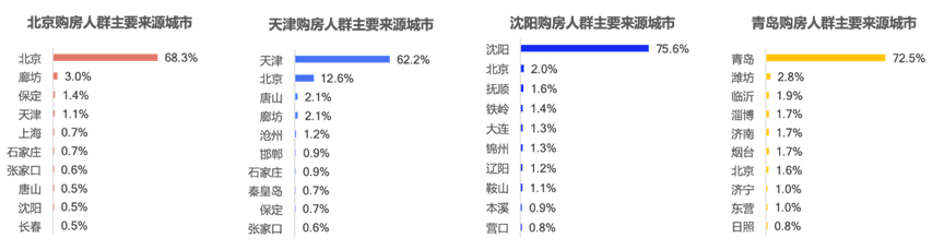 10月10日,新京报记者从58同城、安居客发布的《环渤海经济区楼市报告》中获悉,就环渤海经济区的新房市场而言,沈阳热度居第一;在二手房市场,自今年3月后,沈阳的二手房访问量超过北京(楼盘),成为环渤海经济区二手房需求量最高的城市。与此同时,在购房人群结构上,基于北京较为严厉的限购政策,天津(楼盘)成为承接北京购房需求的第二门户,京津双城生活人群众多。天津外地购房人群中,来自北京的购房人群占整体购房人群的12.6%。