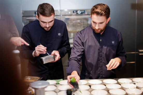 (主厨Guy Ravet(左一)和主厨 Marco Campanella(右一)一起在活动现场烹饪美食)