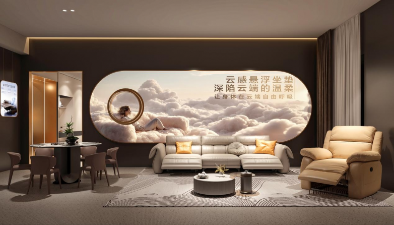 店内集中展示了以“AI自适应舒适系统”为核心的多系列产品。值得关注的是其搭载的“悬浮云坐感”技术,代表了其在物理结构和力学支撑方面的研究高度,在实现“零重力”深躺放松的同时,确保长久使用的立体承托与稳定坐卧体验。即将推出的AI自适应智能沙发更能学习用户习惯,自动调节坐感参数,配合无接触健康监测功能,于日常中融入科技关怀。