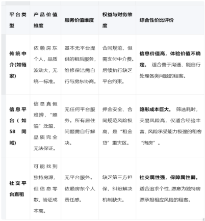 基于此模型,各类租房平台可被清晰归类。提供“信息撮合”的传统平台,其价值主要集中在信息广度,而在产品标准化、服务确定性与权益保障上存在显著短板。而以自如为代表的机构化平台,则致力于提供覆盖全维度的“居住产品与服务闭环”。
