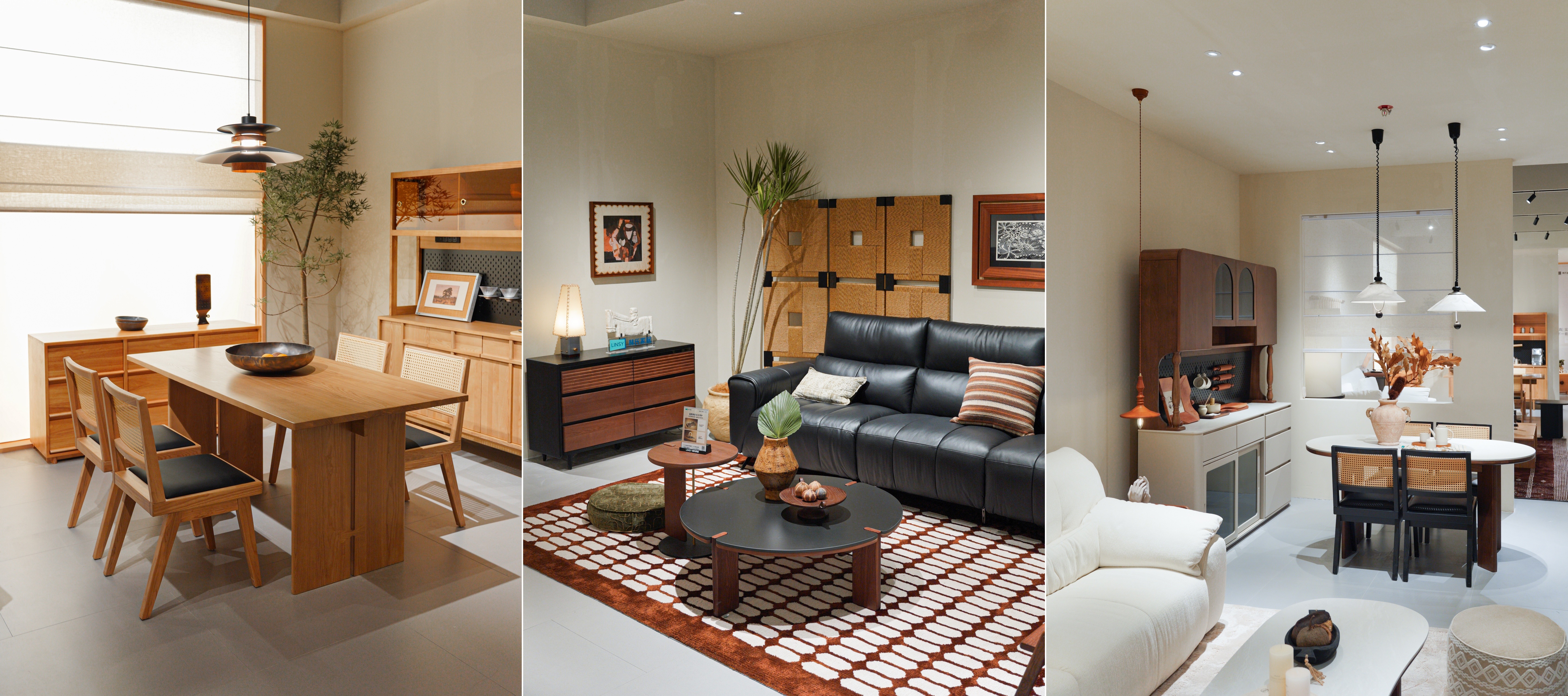 与展会现场的展示逻辑一致,林氏家居千方大店以“去卖场化”为设计哲学,通过超1000㎡的沉浸式家居美学空间,布局超过20种风格的家居空间。每一处场景都延续了展馆中的“活人感”打造手法,让空间呈现出“正在被居住”的真实状态。消费者穿行其间,不再是逛“家具卖场”,而是在体验“理想中的家”。