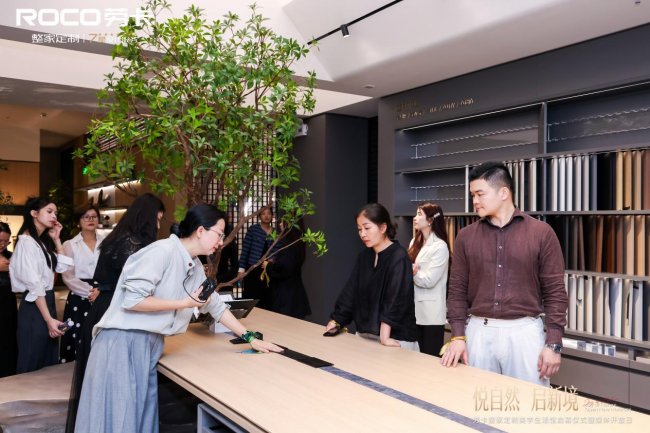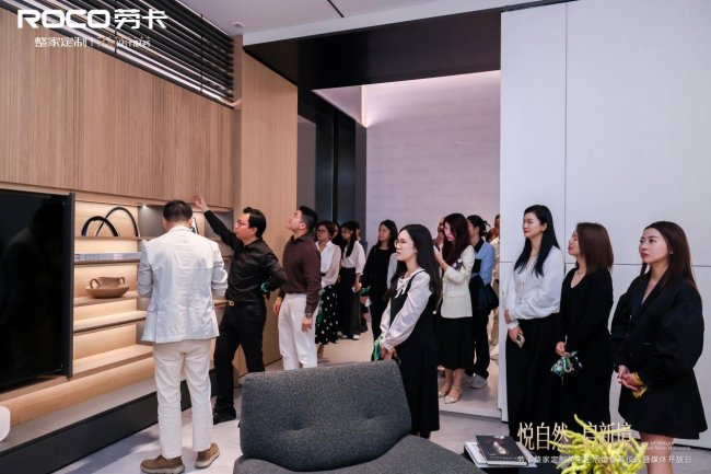 启幕仪式后,在劳卡展厅设计部经理丘淑英的专业引导下,行业大咖、主流媒体团开启了美学生活馆的深度品鉴之旅,从木皮工艺的细节打磨,到空间氛围的美学营造,沉浸式感受劳卡 “悦自然” 的展厅焕新理念,亲身体验自然美学与高端家居的完美交融。